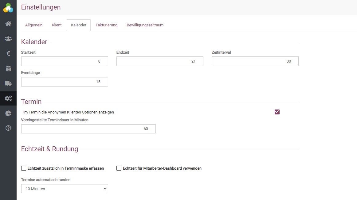 Auch lassen sich verschiedene Parameter nach Tagen festlegen, zum Beispiel ab wann ein Warnhinweis für einen bald auslaufenden Bewilligungszeitraum angezeigt werden soll. Auch können die Schwellenwerte für die farbliche Darstellung von geleisteten Fachleistungsstunden auf dem Dashboard angepasst werden.