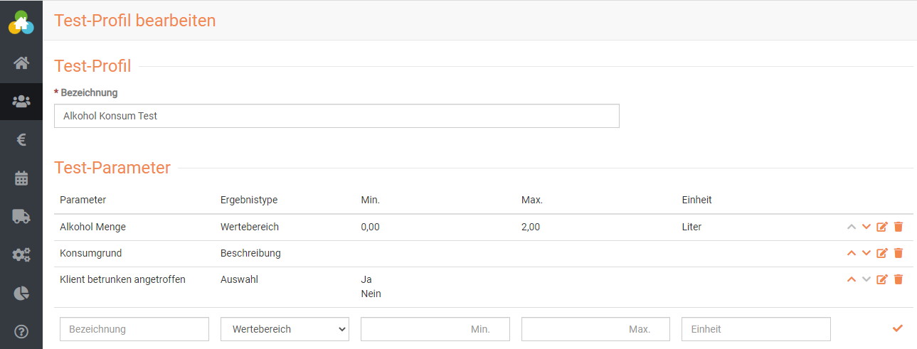 Der Klientenverlauf bietet neben der Dokumentationsfunktion für Schichten oder Termine noch weitere Möglichkeiten der Dokumentation. Mit Hilfe der Warenwirtschaft bzw. Apothekenverwaltung kann nämlich ebenfalls die Medikamentenabgabe gesteuert werden. Dafür können auch Vorlagen für regelmäßige Abgaben definiert werden, was den Arbeitsprozess erleichtert. Ebenfalls ermöglicht es somedo Ihnen unterschiedliche Tests mit Test-Parametern zu dokumentieren, beispielsweise einen Alkoholtest.